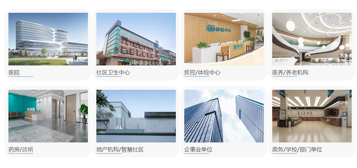广泛应用于医院、社区服务站、医养机构、体检中心、学校、药房、诊所、商超、 公安系统、智慧社区、地产健康管理中心、部门或单位卫生室等各种场所。